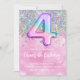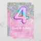 Template Glitter Födelsedagsfest Inbjudan Rainbow Foil Girl 4e födelsedagen