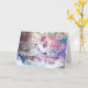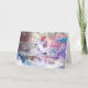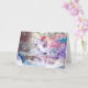 Rainbow galaxy cat ridande unicorn i rymden. kort