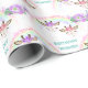 Två leende giraffe ansikte, den ena med lila blommor och den andra med rosa blommor, ligger precis under en mousserande multipelregnbåge på denna födelsedagspresent som är papper. Om du lägger till en lavender- och lila-buquet och anpassningsbarna i teal, och placerar den på en vit bakgrund, har du en söt som är papper för nästan vem som helst.