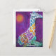 En färgfull regnbåge Giraffe Baby målade på en Lila Texturerad bakgrund. Originalkonst av Laura Barbosa.