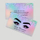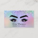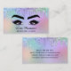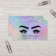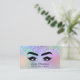 Gör ett bra intryck med det här chic affärskortet med en regnbåge av lila, rosa, blått och grönt faux glitter som droppar uppifrån, ett exempel på lila ögon med glittrad öga och dramatiska ögonbryn och ögonfransar, och ditt namn i ett skript. Lägg till kontaktinformationen på baksidan. Perfekt för professioneller i skönhetssalonger, makeup artists, hårstilists, estetiker och professioneller som tillhandahåller lash- och ögonbryn