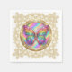 Add elegance and sparkle to your celebration with these beautiful rainbow glitter butterfly paper napkins. The design features a vibrant iridescent butterfly with shimmering rainbow wings framed by a luxurious gold jeweled border, set against a delicate gold lace background for an extra touch of sophistication.