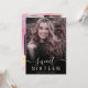 Ett modernt, söt rosa regnbåge i glitter med iridescent holografisk marmor från enmajsfolie i mönster Sweet 16 födelsedagsfest inbjudan med 5 av din anpassningsbar foto med glitter ombre mönster toning och ett modernt snyggt-skript kalligrafi.