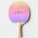 Modern pingpongpaddel med en giftig, regnbåge glitter-bakgrund och ett handskript. Anpassa med ditt namn.