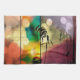 Konstgjord återgivning av ett gräsblad i regnet, som framhävs av många färgstarka ljus