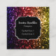 Anpassa och anpassa kvadratiskt affärskort med ditt första och namn. Vacker regnbåge, gult, röd och lila färgstark och glansig gnista. Foto av gult, rött, lila, färgstarka miniatyrbilder, inte glitter!