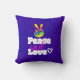 En kudde för coola av funky med fred och kärlek skriven i ett typsnitt av groovy typography. Bilden är en handformad fredssymbol, finger upphöjt i det klassiska v-tecknet som alla är tillverkade i regnbåge i färg. Ett litet dodlhjärta bredvid ord kärlek. Psykedelisk tillväxtdesign. Bakgrund för surt lila.