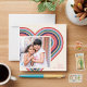 Ett färglöst regnbåge skapar perfekten ram på det här vita och moderna hjärtans dag-fotokortet. Ett enkelt hälsning i hörnet slutför designen. Kortets baksida har en samordnande mönster av rött, rosa, blått, orange och grönt rand.