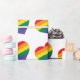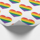 Denna pappra omslutning har en upprepande mönster av regnbågens rand hjärtan på vit bakgrund. Visa ditt sanna färg, stödja giftermål jämlikhet och fira gay pride.