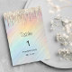 Gold glitter drips rainbow holographic wedding Table Number Invitation. Gold glitter drips cascade elegantly over a rainbow holographic backdrop, creating a stunning, light-catching effect.