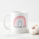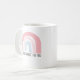 Regnbåge med texten "Hug in a mugg" på mugg.