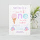 Den här söta inbjudan innehåller en glasskon och ballonger i pastellregnbåge färg med faux guld foil konetti.