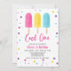 Coola 1! Watercolor Rainbow ice pops sommar 1:a födelsedag party inbjudan.