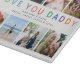 Skapa din egen speciella tangentbord för fotosamlingskärning för pappa. Utformningen har 8 kvadratiska foton som du kan välja med den moderna regnbågstypografin som skriver "KÄRLEK DU DADDY" och anpassar sig med ett sött meddelande och namn/s.