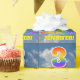 Den pappra designen med ett dynamiskt, spännande och öga-infångande format har blå himmel med molnbakgrunden i mönster, ett stort nummer "3" och "GRATTIS PÅ FÖDELSEDAGEN", som båda har ett flerfärgat regnbågsinspirerat gradient mönster och ett eget namn. Roligt och färgfull födelsedag som är papper som detta kan vara ett roligt sätt att figurera en gåva eller present som ges till någon som firar sin tredje födelsedag. [~Z0000372]