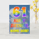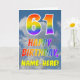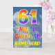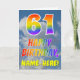 Den här roligten och den färgstarka 61:a födelsedagskalenderns hälsningskort visar ett grumligt blå himmel, tillsammans med ett stort nummer "61" och meddelandet "GRATTIS PÅ FÖDELSEDAGEN" med ett regnbågsfärgat gradient mönster på framsidan. På framsidan finns också en mottagare av anpassningsbar namn. Insidan innehåller ett hälsning-meddelande från anpassningsbarnas födelsedag, eller kan kanske tas bort och lämnas tomt om ett meddelande ska skrivas för hand i stället. Ett sådant här födelsedagskort i personlig kan vara ett roligt för att skicka ett meddelande i firande om någons sextioförsta födelsedag. [~Z0000371]
