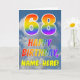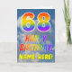 Den här roligten och den färgstarka 68:e födelsedagskalenderns hälsningskort visar en bild av ett blå himmel med moln, tillsammans med ett stort nummer "68" och meddelandet "GRATTIS PÅ FÖDELSEDAGEN", som har en regnbågsinspirerad färgning av mönster på framsidan. På framsidan finns också en redigerbar mottagare av namn. Insidan innehåller ett hälsning-meddelande från personligens födelsedag, eller kan kanske tas bort och lämnas tomt om ett meddelande ska skrivas för hand i stället. Ett sådant här födelsedagskort i anpassningsbarna kan vara ett roligt sätt att skicka önskemål till någon som firar sin sextioåttonde födelsedag. [~Z0000371]