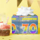 Den här roligten, som är livfull och som tar upp födelsedag med öga har en papper utformning med blå himmel med molnbakgrunden i mönster, ett stort antal "70" och "GRATTIS PÅ FÖDELSEDAGEN", som båda har ett flerfärgat regnbågsspektrum inspirerat mönster och en personlig namn. Färgfull och roligt födelsedag som är papper som detta kan vara ett roligt sätt att figurera en gåva eller present som ges till någon som firar sin 70-årsdag. [~Z0000372]