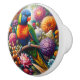 En bländande målning av en Rainbow Lorikeet-papegoja som genomsöktes av en levande visning av färgstarka blommor. De invecklade detaljerna och de djärva nyheterna firar papegojans slående regnbåge och skönheten i den tropiska floran, och tillför en öga-fångstande och glad accent till alla dekorationer eller möbler biet.