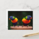 Rainbow Lorikeet Parrots Behålla i kontakt med Zazzle anpassningsbar-vykort! Lägg till din favoritbild till ett tomt vykort eller säg "hi" med en befintlig design. Spara pappert och skicka en anteckning utan att slösa kuvert! 4,25 tum x 5,6 tum (porträtt) eller 5,6 tum x 4,25 tum (liggande). Skrivs ut på ultratungviktskort (120 lb.) lagrar med glans avslutat. Ingen minsta beställning. Hämta anpassningsbar frimärke till matchning! Postage för ett vykort är $0,34