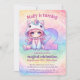 Gör din lilla födelsedag extra magisk med den här korniga regnbågsinbjudan. Med en söt chibiflicka med rosa hår med enmajshöna är det perfekten att ange tonen för ett viskigt firande. En stor 2-i-klistrad färg visar vilken födelsedag du firar. Utskriven med en extrafärgsida för enmajsfärgning på baksidan till de behålla små gästerna som har besökt!