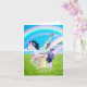 En digital målning av en färglös enmajslandning på gräs efter att hon skapat regnbågar i himlar med sin magi.