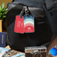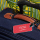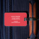 Den här snyggten med röd och blå rand-bagagetapp hjälper dig att hitta väskan i en folkmassa. Den har ett monogram på framsidan och är försedd med ett band så att du kan fästa det på handtaget för bagage. Dess funktionella och moderiktiga utformning gör det till en perfekt för vilken resandes bagage eller bagage som helst.