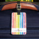 Lägg till en namn och börja med den här färgstarka regnbågsetiketten med rand-bagage för att skapa en unik semestergåva eller behandla dig själv till en skarp och fetstilt bagagetagg för nästa äventyr.