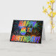 Framsidan av detta spännande, livfulla och öga-infångande hälsningskort har en färgstark mönster inspirerad av högstämda fyrverkerier, tillsammans med meddelandet "LYCKLIG 6E BIRTHDAY!" med en flerfärgad regnbågsinspirerad övertoning mönster, på en svart färgad. Insidan innehåller ett anpassningsbar hälsning-meddelande, eller så kan det kanske rensas och lämnas tomt om ett meddelande ska skrivas för hand i stället. Ett hälsningskort som detta kan vara en roligt, ett lycklig-sätt att skicka ett hälsning-födelsedagsmeddelande till någon som firar sin födelsedag i 6e. [~Z0000355]