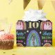 Guld, rosa, blått, grönt och lila glitter-regnbågar omger ett bågfoto av födelsedagsflickan på svart födelsedagslagning pappert. Anpassa enkelt fotona, namn och åldern för en anpassningsbar 10 år eller för ett år. Lägg din presenter i glamorös papper för din lilla födelsedag.