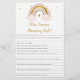 De här beundransvärda som känner till bästa kort för Mamma är en roligt babykläder. Ge dem bara runt under babyduschen där gästerna får roligt att besvara frågor om Mamma att vara! Personen med de rätta vinner! Utformningen har vår hand plockade-regnbåge och moln i neutralt färg med jordton med glitter-stjärnor från Faux guld.