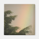 Den här magneten har ett foto av en färgstark regnbåge mot ett grått himlar. Regnbågen är utmärkt placerad bakom ett träd som skapar en underbar natursyn på dess vackraste natur.