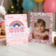 Rainbow One Photo Birthday Baby Girl Inbjudningar