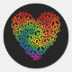 En bild av fred, kärlek och mångfald. Ett hjärta består av fredssymboler i regnbåge färg.