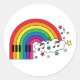 Lycklig och färgstarka regnbågar förvandlas till piano nycklar när vår kommer ut från ett musikfluffmoln omgivet av musik noter och färgstarka stjärnor.