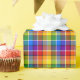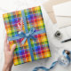Gift-omslutning med en ljusstark flerfärgad, plaid mönster. En originalplan för tartan.