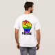 Visa er solidaritet för hbt-partiet med den här regnbågsformgivningen. På framsidan lämnat, på fickytan, finns en liten version av regnbågstaven, med fet stil under "PRIDE". Det finns en större version på skjortans baksida.