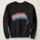 En förenklad och färglös återgivning av en regnbåge med ett stick figur som håller upp den som att väva ett flagga i pridet. Det förmedlar en känsla av samarbete och stollig, eftersom figur tycks stödja den vibrerande rörelsen.