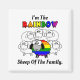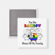 Den här regnbågsmagneten har en flock med vita får. Framför flocken finns ett enskilt får med färg i HBT-flagga. Texten på står: "Jag är familjens RAINBOW-får." Bakgrunden till färg kan anpassas.