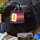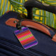 Få ut ditt bagage på en karusell med unika märkre! Denna briljanta färgad bagagemärke dekoreras med ett strimlat mönster i orange, lila, gult, rött, grönt, violett och svart som liknar en vacker abstrakt regnbåge mönster. Anpassa baksidan med din personliga information.