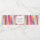 Etiketter för vattenflaska med abstraktens bakgrundsdesign. Vibrant rand i både fet och pastel färg. Pinks, blues, lila och gult färg i kombination med faux guld glatt glitter överst.