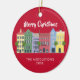 Denna charmerande julprydnad illustrerar Charlestons historiska regnbåge på Öster Bay Street i Charleston, South Carolina, med vit ljus för helgdagarna. Lägg till fotot på baksidan av ornament. Bakgrunden färg är redigerbar, så du kan ändra den till valfritt färg. Matchande julfotkort, pappra omslag, klistermärken, kuvertfoder och andra tillgängliga produkter.