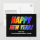 På framsidan av vykortsdesignen finns meddelandet "GOTT NYTT ÅR!" i färgstark text för regnbågsspektrum som inspirerats av övertoning. På framsidan finns också en personlig namn. Baksidan innehåller ett anpassade-meddelande. Ett vykort som detta kan användas för att skicka nyår hälsning till vänner och familj.
