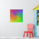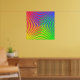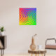 Här är en färglös poster med en abstrakt spiral-regnbåge mönster som snurrar runt ett centralt mål i färg av grönt, blått, gult, orange och rött.