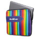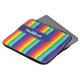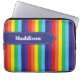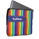 Denna ljusa regnbåge strimlad mönster laptop sleeve har ett indigo blått banderoll med vita sömndetaljer över överkanten. Det är personlig med en namn eller spelar ingen roll text som du vill lägga till.