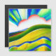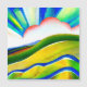 Digital vattenfärgslandskapsplanering i vibrerande regnbåge i färg och struktur med soluppgång och utskjutande solstrålning.