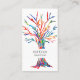 Rainbow Träd Yoga Studio Affärskort. Detta unika och färgstarka affärskort dekoreras med en ursprunglig Livets träd-design som är gjord i mosaik med hjälp av fragment av lättfärgat glas av färgad. Anpassa den med ditt namn och din information. Eftersom vi skapar vår egen teckning kommer du inte att hitta just den här bilden från andra designers. Ursprunglig vattenfärg © Michele Davies.