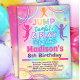 Rainbow Trampoline Park Girls Jump Birthday Inbjudningar