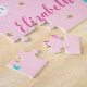 Den här personligens pussel har en regnbågsunicorn med stjärnor och faux guld glitter. Anpassa texten till namn.