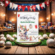 En underbar design med en söt regnbåge som spelar baseboll och elegant kalligrafi! Du kan anpassa inbjudan med dina egna uppgifter.